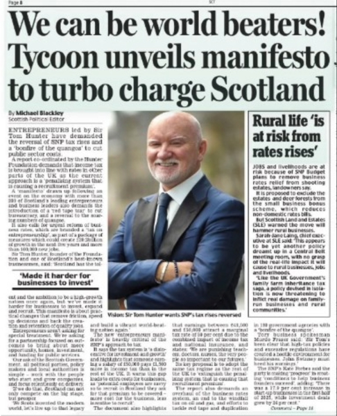Hot on the heels of the Scottish Budget, the team supported The Hunter Foundation to launch Sir Tom Hunter’s Entrepreneurs Manifesto for Scotland – a clear call for a national “reset” to unlock growth, drive investment and create jobs.